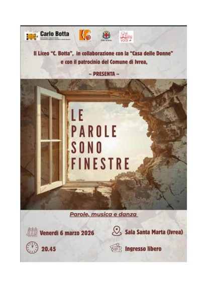 Venerdì 6 marzo 2026, ore 20.45 – Le parole sono finestre – Sala Santa Marta – Ivrea