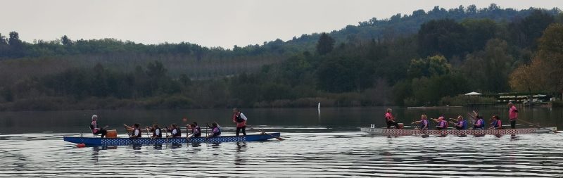“Pagaiare sull’acqua, immerse nel verde, nella sincronia perfetta del Dragonboat, dà benessere al corpo e alla mente. Quando saliamo sul dragone lasciamo i pensieri sul pontile e partiamo. Nel silenzio del lago sentiamo il nostro corpo di nuovo vivo e felice di esserlo.”