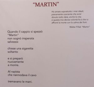 Ora devo concedermi una nota personale. Una poesia in particolare, tra quelle in mostra, mi tocca particolarmente perché centrata su luoghi e una persona che ben conoscevo.