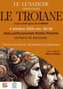 Sabato 4 ottobre 2025 nella Sala polifunzionale Emilio Pinchia di Banchette la compagnia Le Lunatiche ha portato in scena lo spettacolo Le Troiane, con la regia di Mauro Stante. La serata è il frutto della collaborazione tra la compagnia teatrale e il Comune di Banchette, la Casa delle donne di Ivrea e il comitato Un aiuto per la Palestina.