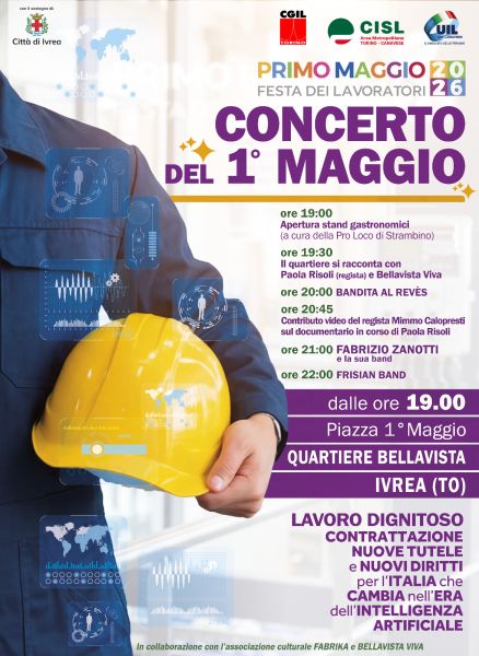 Il Primo Maggio 2026 di Ivrea batte nel cuore del Quartiere Bellavista. Quest’anno, la tradizionale Festa dei Lavoratori promossa dai sindacati CGIL, CISL e UIL, in collaborazione con le associazioni locali, trasforma Piazza 1° Maggio in un palcoscenico di riflessione, cultura e musica dal vivo.