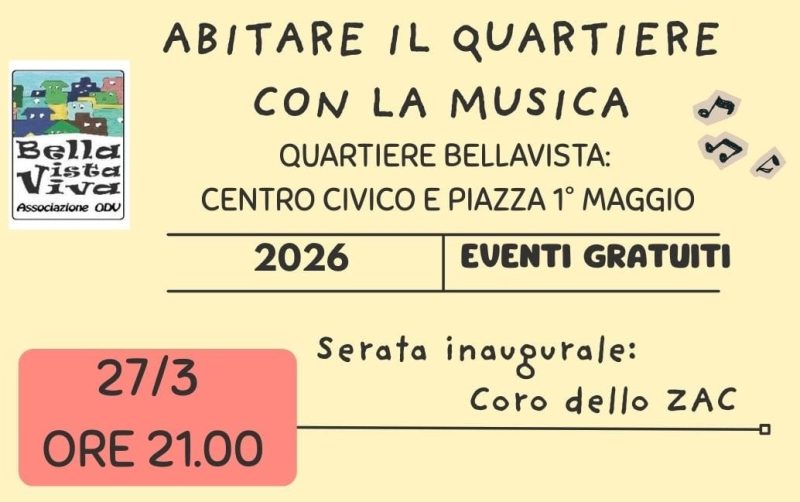 L’ampio progetto Abitare il quartiere con la musica porta nel quartiere Bellavista musiche per tutte le età e per tutti i gusti, per rilanciare la socialità e la cultura anche in periferia