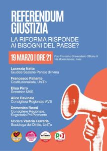 All’incontro parteciperanno: • Lucrezia Natta, giudice della sezione penale del Tribunale di Ivrea • Francesco Pallante, costituzionalista dell’Università di Torino • Elisa Pirro, senatrice del Movimento 5 Stelle • Alice Ravinale, consigliera regionale AVS • Domenico Rossi, consigliere regionale e segretario del Partito Democratico del Piemonte